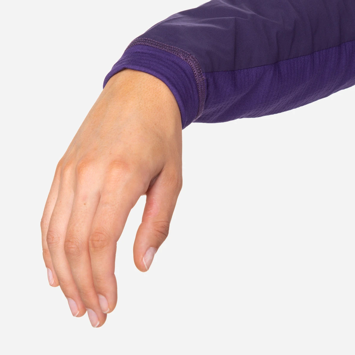 Hoch atmungsaktiver Hybrid-Midlayer für schweißtreibende Aktivitäten am Berg.
